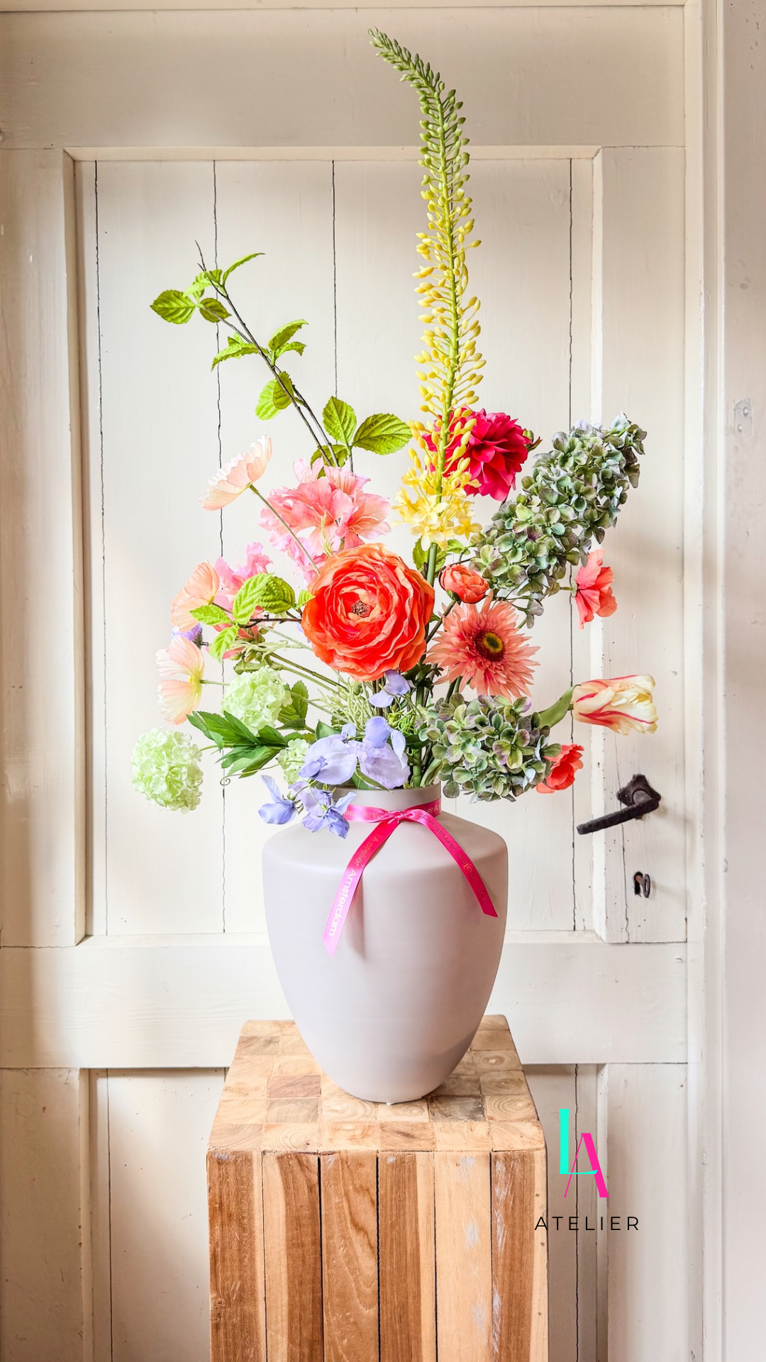 Zijden bloemen bieden eindeloze mogelijkheden voor personalisatie. We werken graag met onze klanten samen om unieke bloemstukken te creëren die passen bij hun individuele smaak en stijl. Of het nu gaat om een speciale gelegenheid, een cadeau voor een dierbare of gewoon om jezelf te verwennen. De boeketten zijn altijd gemaakt met een paar eyecatchers erin. Door deze eens in de zoveel tijd te vervangen heb je meteen een heel ander boeket.